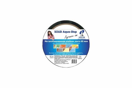 Скотч SOLID AQUA STOP представляет собой блестящую металлизированную клейкую ленту, скрепляющую листы подложки между собой и препятствующую попаданию в швы влаги и пыли.