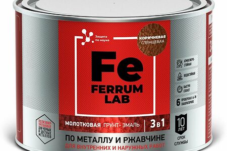 Грунт-эмаль FERRUM LAB по ржавчине 3 в 1 молотковая коричневая, банка 0,4 л доставка