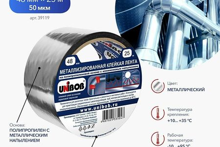 Лента клейкая UNIBOB, металлизированная 50мм х 25м доставка