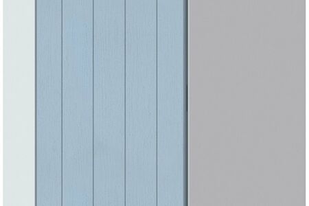 Добротная мебель из серии Кантри освежает интерьер благодаря выигрышной комбинации белого и голубого цветов, поднимает настроение во время приготовления пищи и застолья. Фасады с древесной текстурой придают гарнитуру респектабельный и элегантный вид.