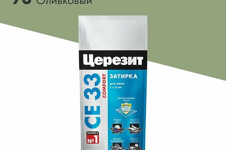 Цементная затирка для швов Церезит СЕ 33 Comfort оливкового оттенка легко замешивается и наносится, содержит водоотталкивающие и противогрибковые компоненты, предотвращает попадание влаги и пыли в межплиточное пространство, обеспечивает привлекательный внешний вид облицовки и увеличивает срок службы покрытия.