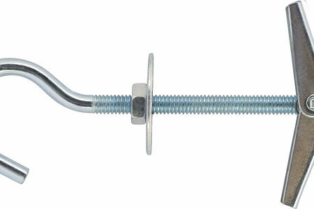 Дюбель складной пружинный с крюком используют для крепления различных светильников, элементов стеллажей, карнизов для штор и навесных шкафов, кабельных лотков и т.п.