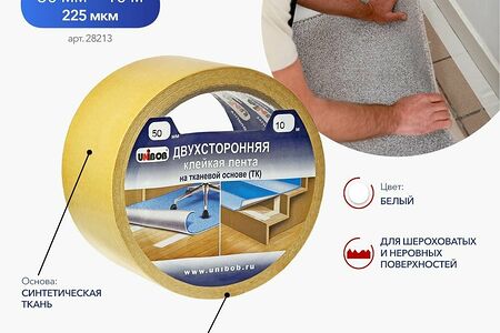 Двухсторонняя клейкая лента UNIBOB, на тканевой основе 50мм х 10м доставка