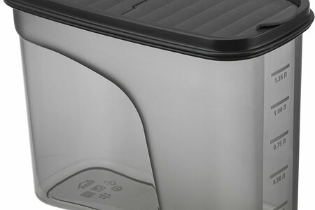 Наши ёмкости позволяют не только организовать пространство в местах хранения, но и с лёгкостью использовать надёжную крышку–дозатор при готовке различных блюд. Рамка крышки выполнена из полиэтилена, поэтому она плотно прилегает к корпусу и не пропускает воздух и запахи.