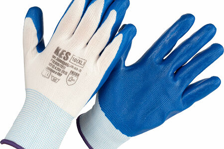 Сплошной нитрильный облив исключает проскальзывание предметов, обеспечивает защиту от проколов и истирания
