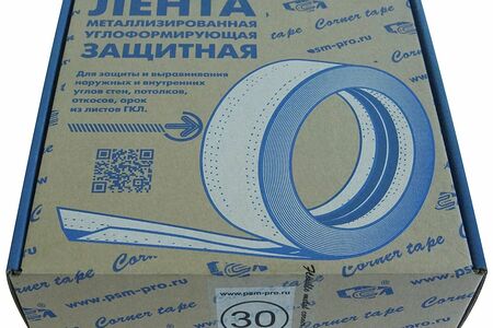 Монтажная лента представляет собой полосу плотной перфорированной бумаги с металлическими лентами, разделенными продольной бороздой для углового изгиба. Вставки из металла способствуют плотному прилеганию ленты к поверхности, а перфорированное покрытие бумажной части снижает вероятность вздутия обработанной поверхности. Армированная лента выпускается в рулонах по 30 метров, ширина которого составляет 50 мм.