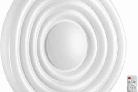 Светильник 7679/EL линии FASS состоит из металлического основания (базы) и пластикового рассеивателя. Материал рассеивателя - высококачественный пластик марки PMMA 2.0 белого цвета с глянцевой поверхностью. Пластик обеспечивает светильнику равномерное рассеивание и хорошее светопропускание. Форма плафона: круглая, декорирована рельефом из пластика в виде узора белого цвета. Степень защиты IP43 позволяет использовать светильник в определенных зонах влажных помещений. В комплект входит заменяемый LED модуль с линзами, мощностью 70Вт, которая соответствует лампе накаливания 610Вт. А также пульт ДУ (с креплением на стену), с помощью которого осуществляется плавное изменение цветовой температуры 3000-6000К, изменение яркости, переход в режим переключения теплого/белого/холодного/ночного света. Светильник имеет функцию "память".
