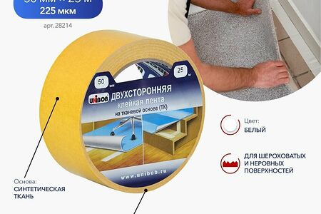 Двухсторонняя клейкая лента UNIBOB, на тканевой основе 50мм х 25м доставка