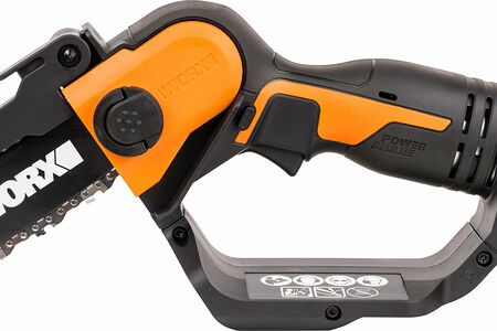 Аккумуляторная одноручная пила WG324E 20В - пила для обрезки и распиливания небольших веток и сучков с длиной шины 12 см - это идеальный инструмент для садовода, которому нужна небольшая пила для обрезки. Компактный размер данной пилы позволяет работать ею одной рукой, таким образом выполняя обрезку высоких деревьев. WG324E весит всего 1,8 кг, и позволяет отпиливать ветки толщиной до 10 см. Защита рукоятки и простая система замены и натяжения цепи делают работу с этим инструментом легкой и безопасной.
