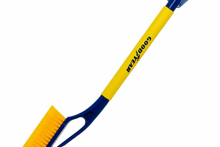 Удобная щетка Goodyear для удаления снега и льда с поверхности автомобиля. Щетка изготовлена с применением распушенной щетины, что позволяет бережно и эффективно очистить кузов и стекла от снега.