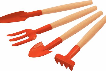 Набор садовых инструментов выполнен из металла с деревянным черенком. Изделия предназначены для любых видов работ в саду и дома: разрыхления и подготовки почвы, посадки и ухода за растениями.