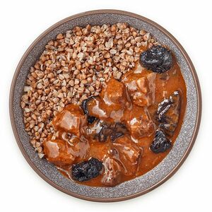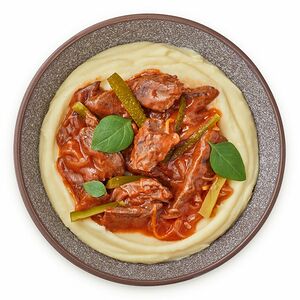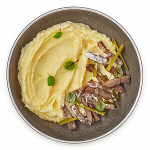 Томленые говяжьи щечки с пюре из картофеля и сельдерея и луковым чатни Шеф Перекрёсток, 295г доставка
