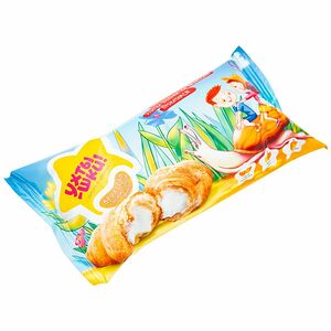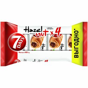 Срок годности в днях: 150Состав: Тесто: мука пшеничная хлебопекарная высшего сорта, вода питьевая, маргарин (пальмовое масло, вода питьевая, соль поваренная пищевая, эмульгатор (моно- и диглицериды жирных кислот), регулятор кислотности (лимонная кислота), консервант (сорбат калия 0.1%)), сахар, стабилизатор (моно- и диглицериды жирных кислот), дрожжи хлебопекарные прессованные, соль поваренная пищевая, ароматизатор, молокосодержащий продукт (молочный белок, стабилизатор (ксантановая камедь), эмульгатор (рапсовый лецитин), регулятор кислотности (лимонная кислота)), консервант (пропионат кальция 0.1%). Крем со вкусом ваниль 34%: сахар, пальмовое масло, вода питьевая, молоко сухое обезжиренное, декстроза, спирт этиловый ректификованный из пищевого сырья «Люкс» 96.3% об, желток яичный сухой, эмульгатор (эфиры полиглицерина и жирных кислот), стабилизатор (камедь целлюлозы), регуляторы кислотности (дигидропирофосфат натрия, орто-Фосфорная кислота), ароматизатор, консервант (сорбат калия 0.1%), лактоза. Продукт может содержать незначительное количество: орехов, соевых продуктов.Пищевая ценность: Калорийность: 446Белки: 7Жиры: 26Углеводы: 45Страна изготовления: РоссияПроизводитель: 7 Days