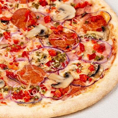 Пепперони, ветчина, сыр моцарелла, сыр сулугуни, перец болгарский, пицца-соус (30 см)