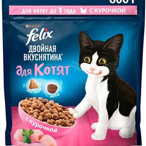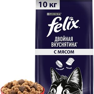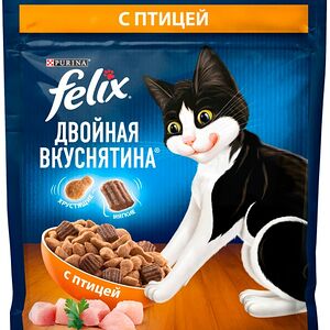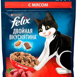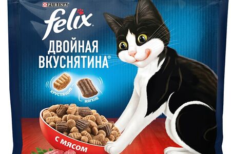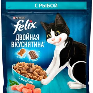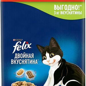 Любопытство вашего кота заложено природой! И бренд Felix снова придумал, как его удовлетворить. Представляем "Felix Двойная Вкуснятина" — сухой корм для кошек, который полностью соответствует потребностям вашего озорника. Восхитительное сочетание двух текстур в одной упаковке: хрустящие гранулы смешаны с мягкими кусочками для создания невероятного вкуса, перед которым невозможно устоять! Широкий ассортимент позволит коту наслаждаться разнообразием мясных или рыбных вкусов с соблазнительными ароматами. "Felix Двойная Вкуснятина" — первый сухой корм, созданный под брендом Felix для находчивого кота, который знает толк во вкусной еде. Не содержит искусственных красителей и консервантов. Сочетание хрустящих гранул с мягкими и нежными кусочками. 100% сбалансированный полный рацион. Содержит витамины А, Д, Е и таурин. Совет от Felix: вы пробовали комбинировать сухой и влажный корм в ежедневном рационе вашего кота? Попробуйте! Ведь теперь Felix доступен в обоих рационах.