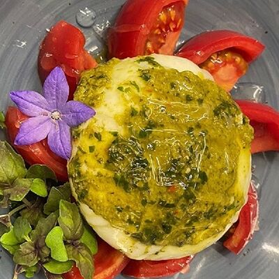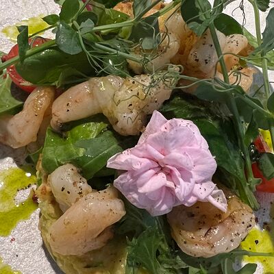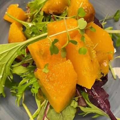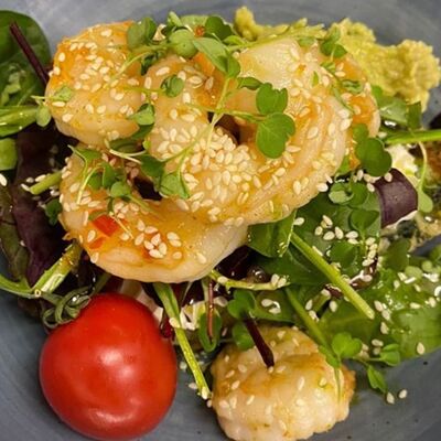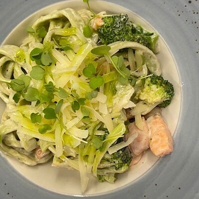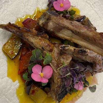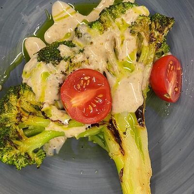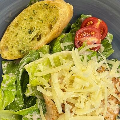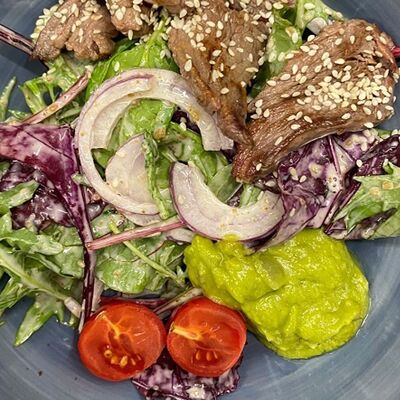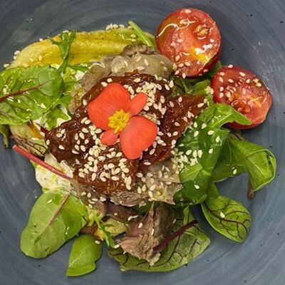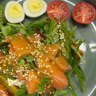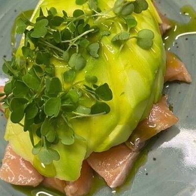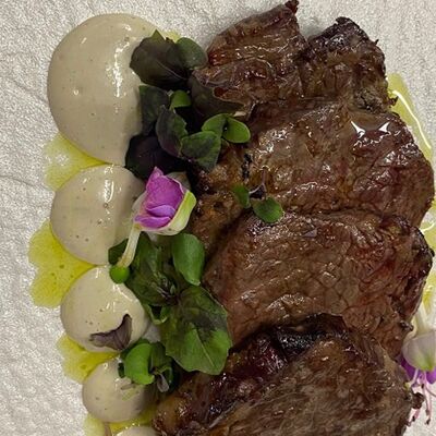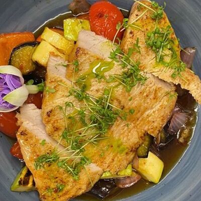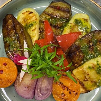 Стейк из семги, приготовленный на гриле. Подается с лимоном