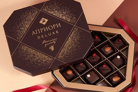 Брусничный мармелад в горьком шоколаде, классический марципан в горьком шоколаде, апельсиновый марципан в горьком шоколаде. Ассорти конфет в горьком шоколаде, которое можно в пост (13 шт.)
