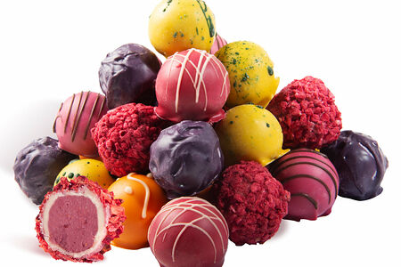 Яркие фруктовые начинки в одном ассорти: Малиновый мусс, Апельсиновый мусс, Трюфель Манго-Маракуйя, Трюфель Черничный, Лимонный смузи, Клубничный смузи