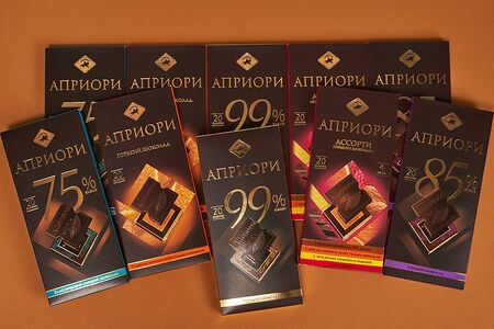 Набор из 10 плиток шоколада включает: горький шоколад Априори 75% какао (100 г) (2 шт.), горький шоколад Априори 85% какао (100 г) (2 шт.), горький шоколад Априори 99% какао (100 г) (2 шт.), горький шоколад Априори с цукатами апельсина и лепестками миндаля (100 г) (2 шт.), горький шоколад Априори Ассорти с цукатами и орехами (100 г) (2 шт.). Микс классической линейки горького шоколада Априори - подарок гурманам. Дополните чаепитие в кругу семьи или угостите коллег, они обязательно оценят яркие сочетания и качество ингредиентов