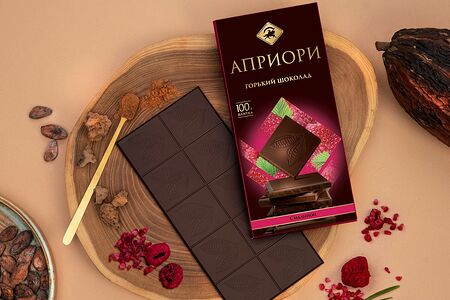 Тонкая плитка шоколада Априори — прекрасный сладкий подарок для дорогого человека. Дуэт из терпкого шоколада и яркой кислинки сочной малины станет гастрономическим открытием, которое, к слову, идеально сочетается с сыром пармезан. Кроме того, сублимированные ягоды сохраняют свои питательные свойства, а настоящий горький шоколад является кладезью антиоксидантов. Лакомства Априори — вкусно, полезно и с любовью!