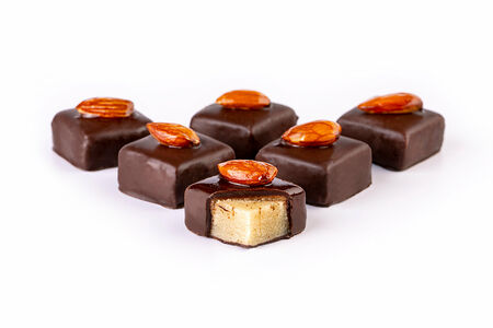 Классическая плотная начинка из сладкого и горького миндаля создает неповторимый вкус немецкого марципана! Конфета ручной работы дополнена ликером San Giorgio Amaretto с мягким вкусом. Покрыта горьким шоколадом с высоким содержанием какао-бобов. Продукт является постным (6 шт.)