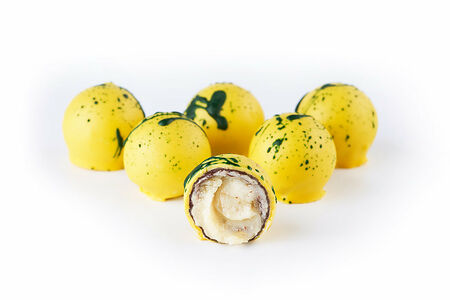 Освежающий лимонный мусс мы оттенили сливочным вкусом белого шоколада! Конфета ручной работы дополнена сладкими цукатами из цедры лимона, покрыта слоем темного и белого шоколада