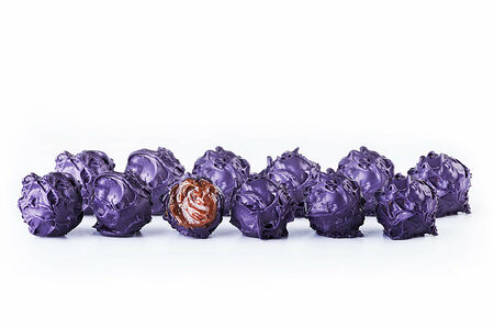 Внутри конфеты крем на основе пюре из свежих ягод. Мы покрываем конфету темным, а затем белым шоколадом, используем натуральные красители – кармин и чернила каракатицы (моллюсков)