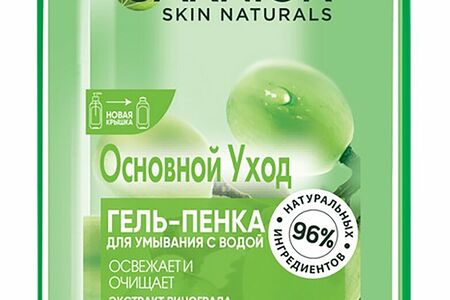 Garnier Гель-пенка для лица Основной уход, Экстракт винограда, очищающий, для нормальной и смешанной кожи доставка