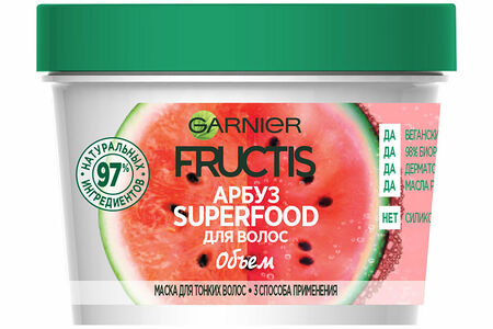 Garnier Fructis Маска для объема тонких волос Суперфуд Арбуз 3 в 1 доставка