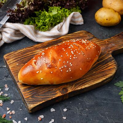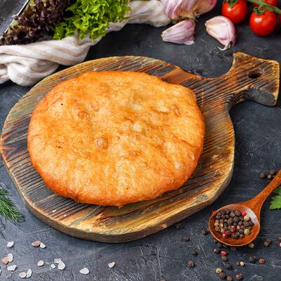 Мука, молоко, яйцо, дрожжи сухие, соль, сахар, масло, говядина, чеснок, лук
