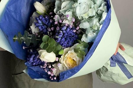 Гортензия 1 Роза 2 гиацинт 4 Тюльпан 2 Эвкалипт 1 Гипсофила1