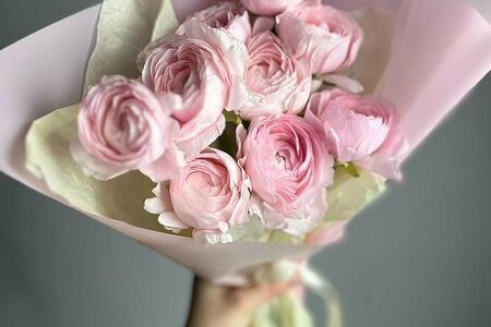 Букет из 9 цветов ранункулюса в подарочной упаковке доставка