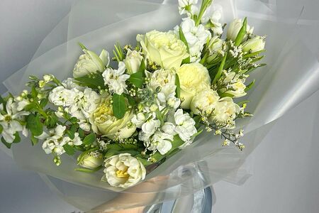 Тюльпаны 11 Роза сортовая 3 Маттиола 3 Лимониум 2 Прунус 1