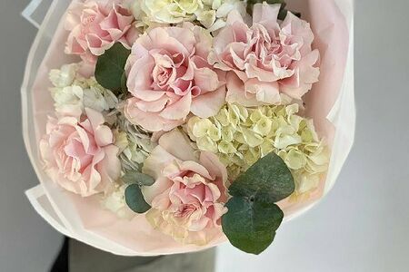 5 роз и 3 пышные гортензии доставка