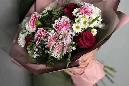 Привнесите в ваш дом уют и тепло с этим великолепным букетом из цветов. Сочетание нежных оттенков и ярких цветов принесет в вашу жизнь каплю радости и любви. Этот букет станет идеальным подарком для ваших близких или просто для того, чтобы украсить ваш дом. Выразите свои чувства с помощью красивых цветов и наполните свое пространство теплотой и красотой.