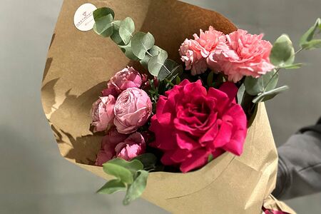 Роза кустовая пионовидная Роза французская Гвоздика Эвкалипт