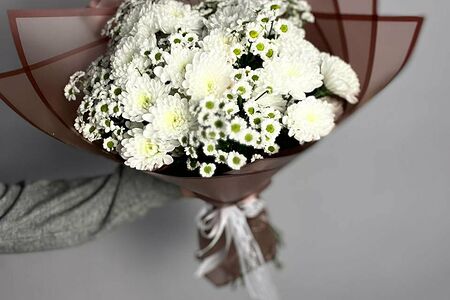 состав: 4 кустовых белых хризантемы, 7 сантини