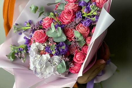 Матиола 5 Гортензия 1 Кустовая Роза 7 Эвкалипт 3 Лимониум 2