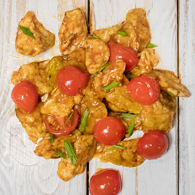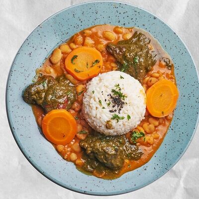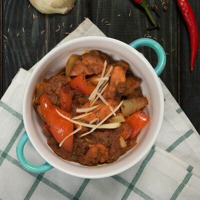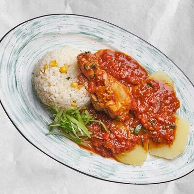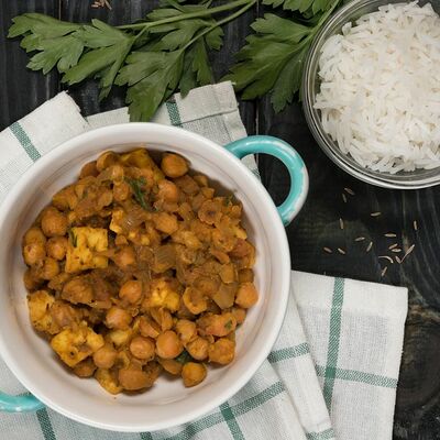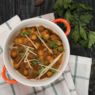 Нут в томатно-луковым соусе с имбирем и чесноком