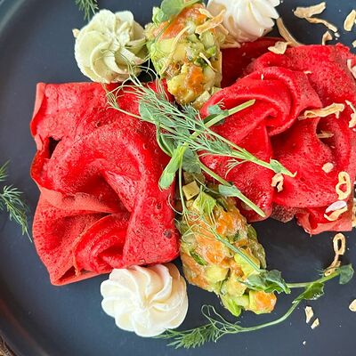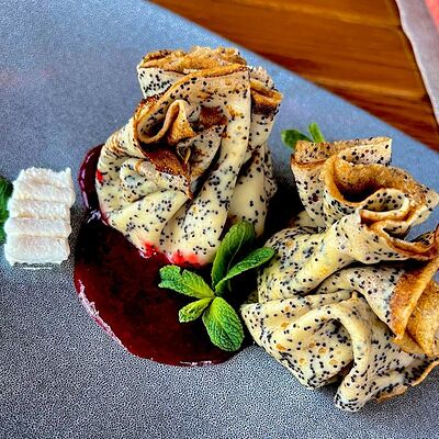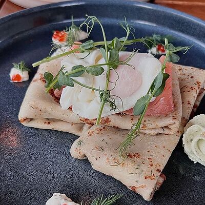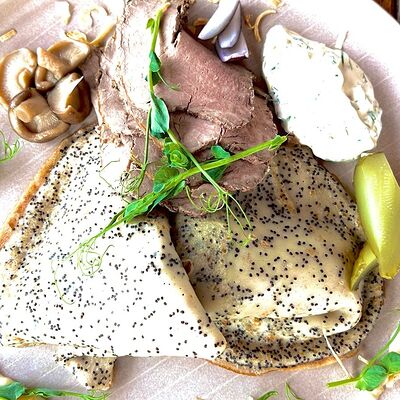 Блины с муссом из куриного филе и соусом Цезарь 2шт доставка