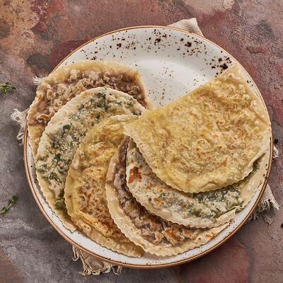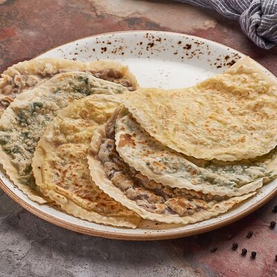 Блины с муссом из куриного филе и соусом Цезарь 2шт