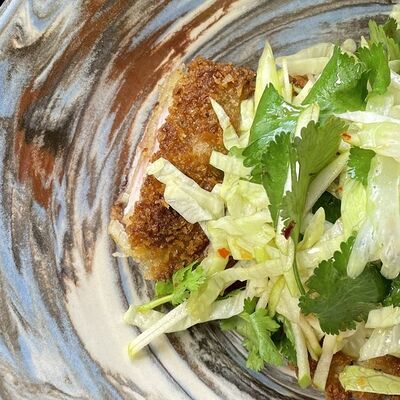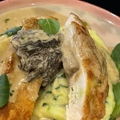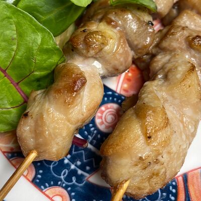 Куриное мясо подается с вермишелью в курином бульоне. Украшается зеленью