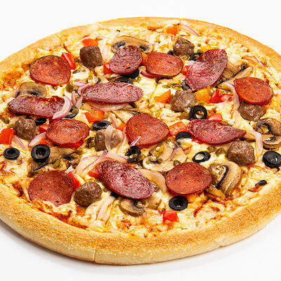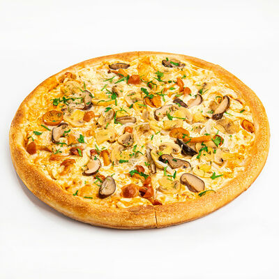 Колбаски, Опята, Грузди, Шампиньоны, Репчатый лук, Сыр моцарелла, Томатный соус, Чеснок, Петрушка, Укроп