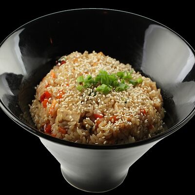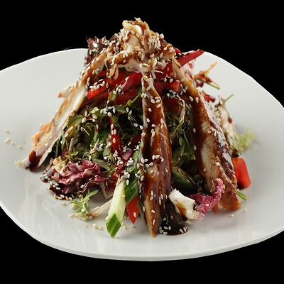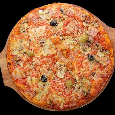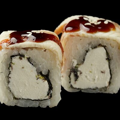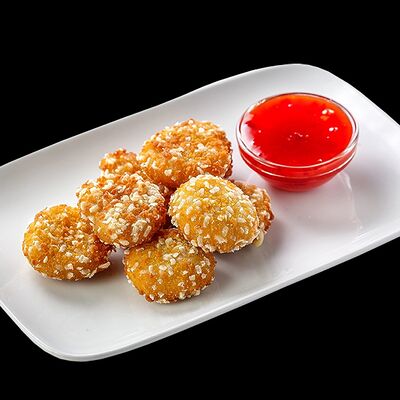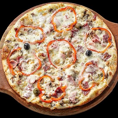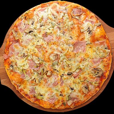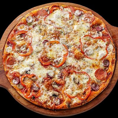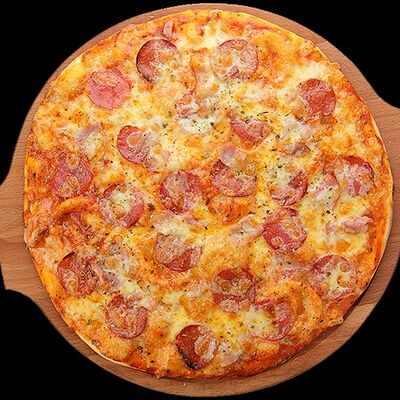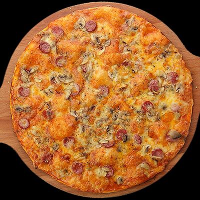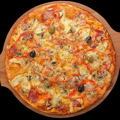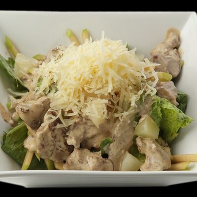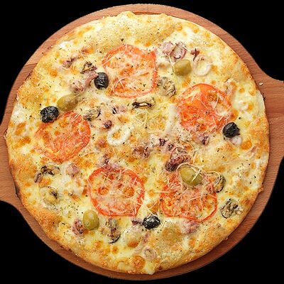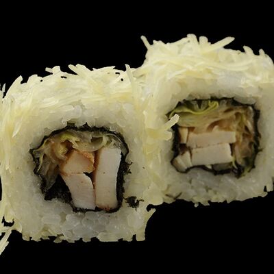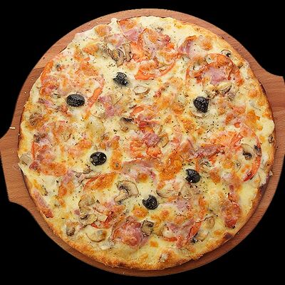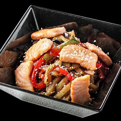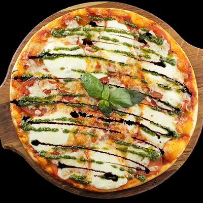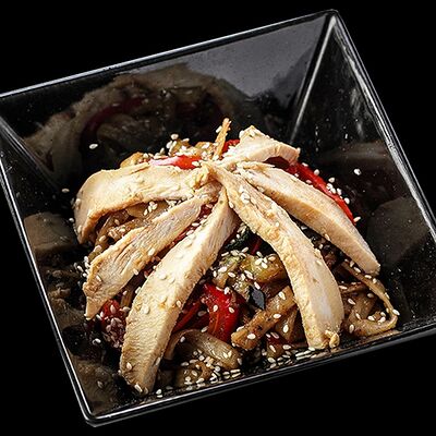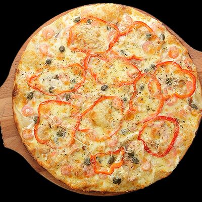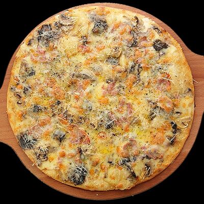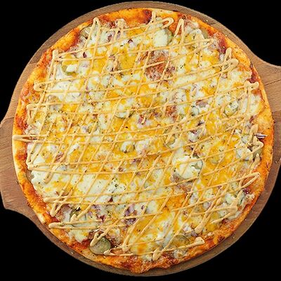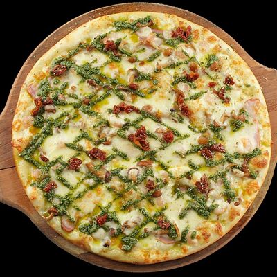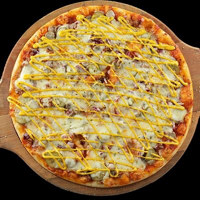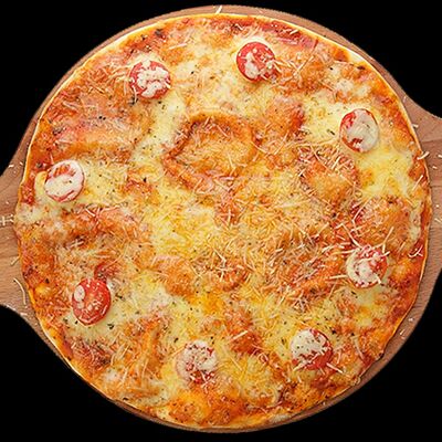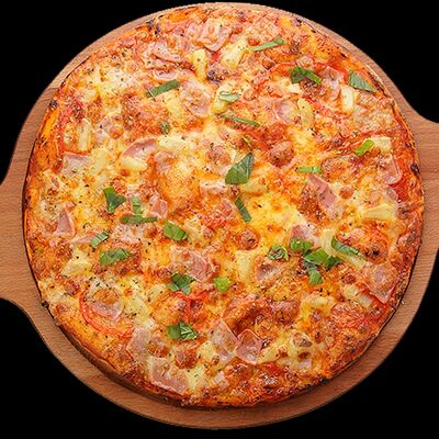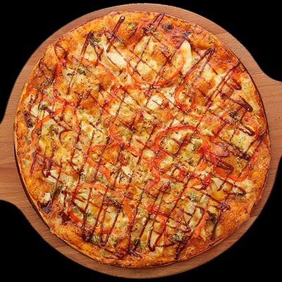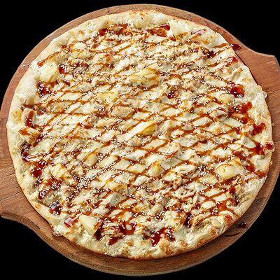 Сыр моцарелла, соус сливочный, филе куриное, ананасы, жареный кунжут, соус терияки (33 см)