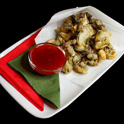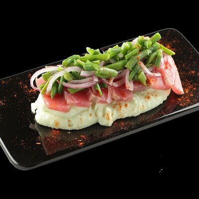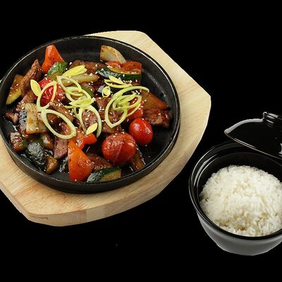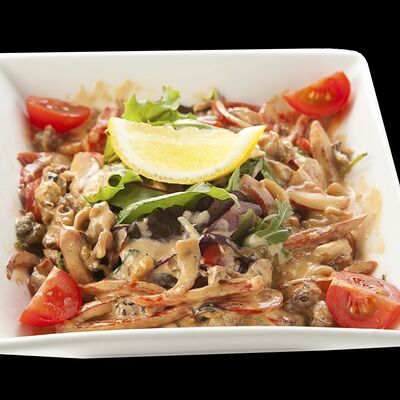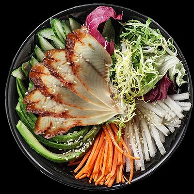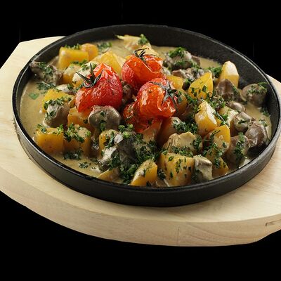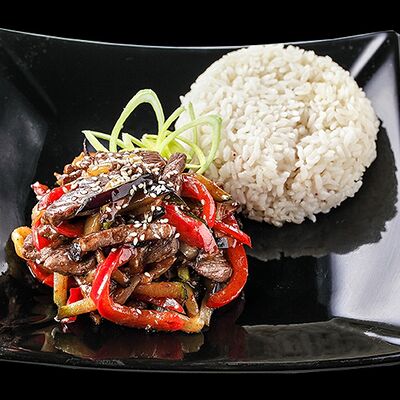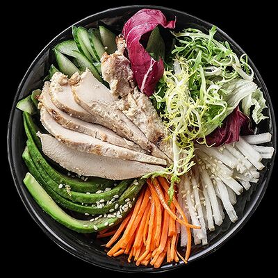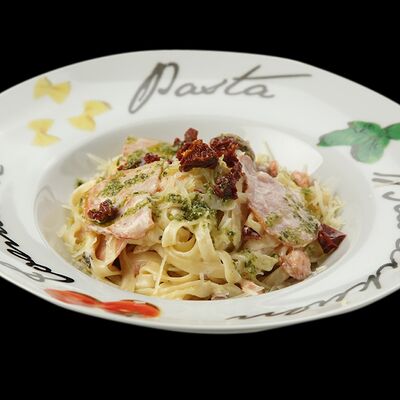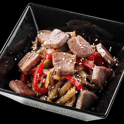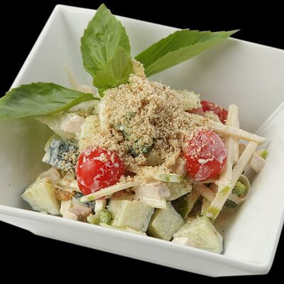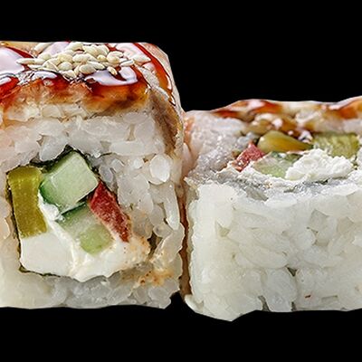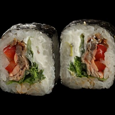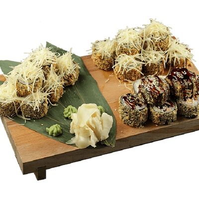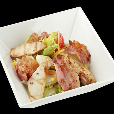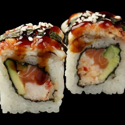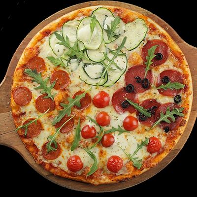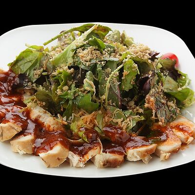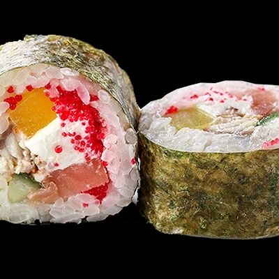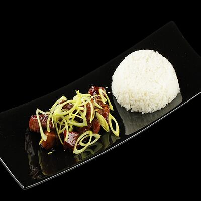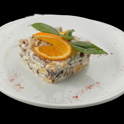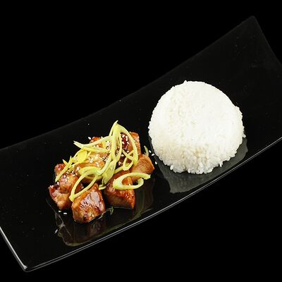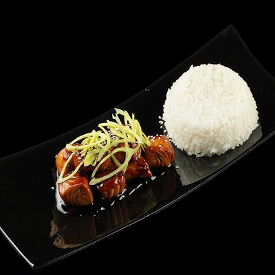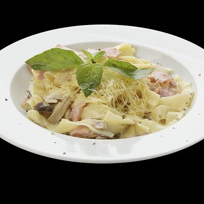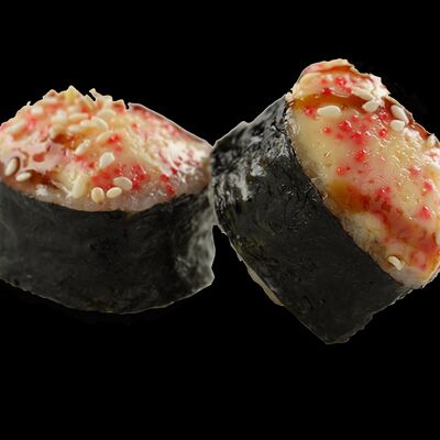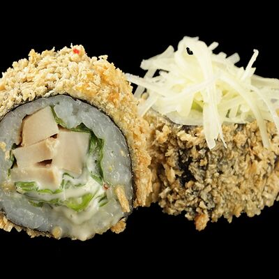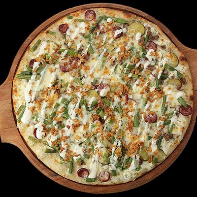 Сыр моцарелла, соус сливочный, филе куриное, ананасы, жареный кунжут, соус терияки (33 см)