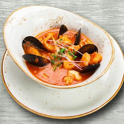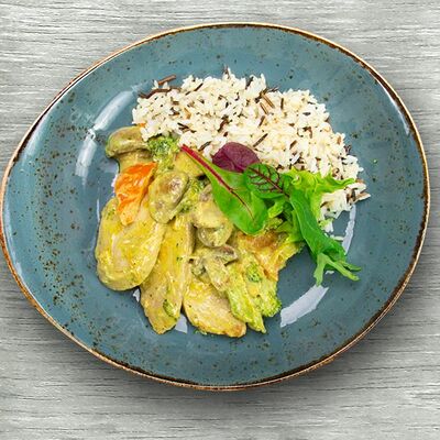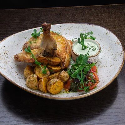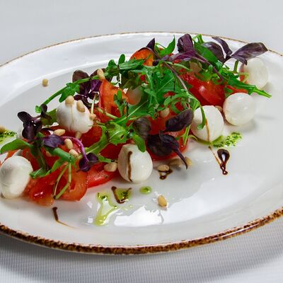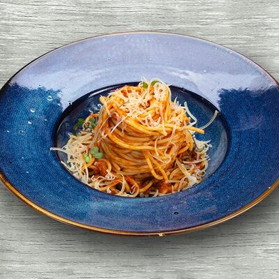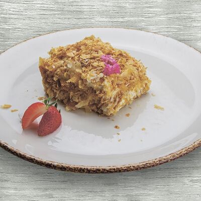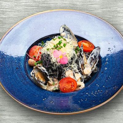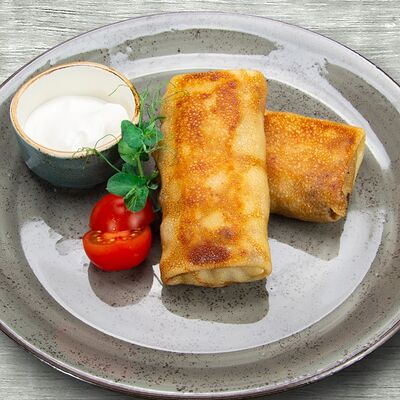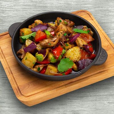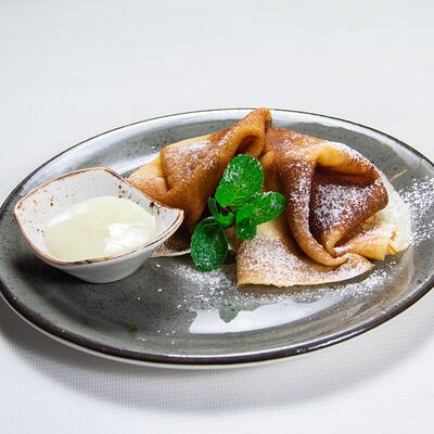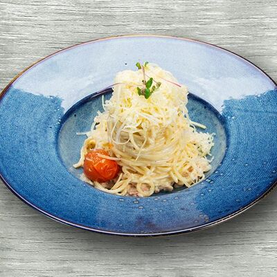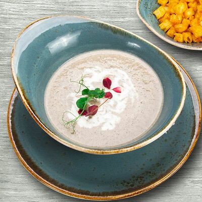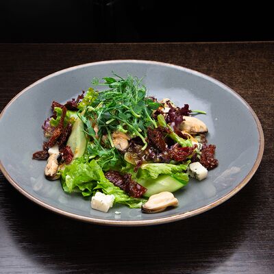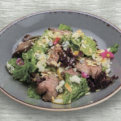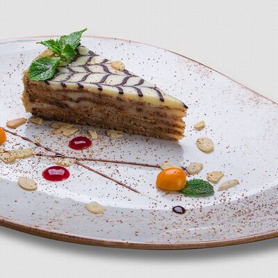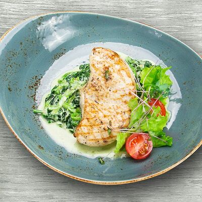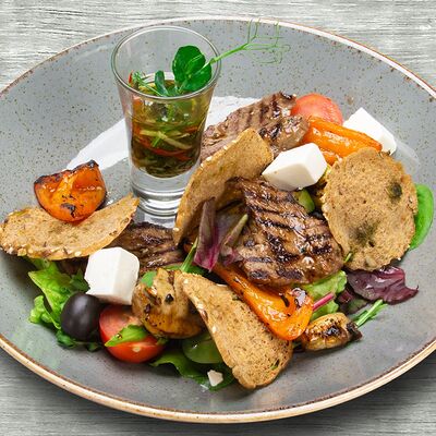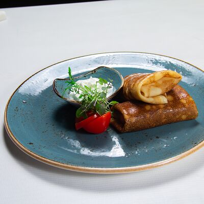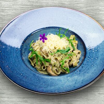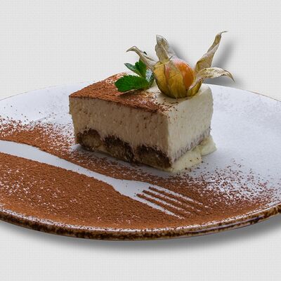 Язык говяжий томленое с грибами в сливочном соусе запечённое под корочкой из сливочного сыра