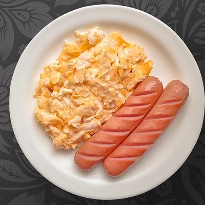 Яйца, молоко, соль, семга жареная, сливочный сыр