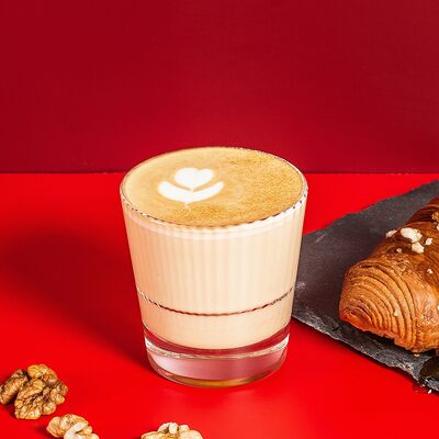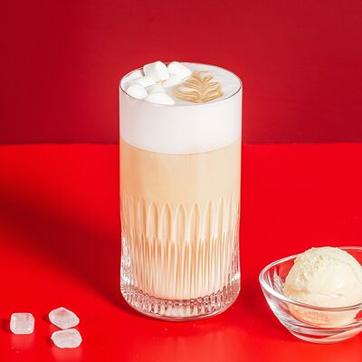 Мягкий кофейно-сливочный напиток с добавлением пасты (банановое мороженое), солёной карамели и маршмеллоу