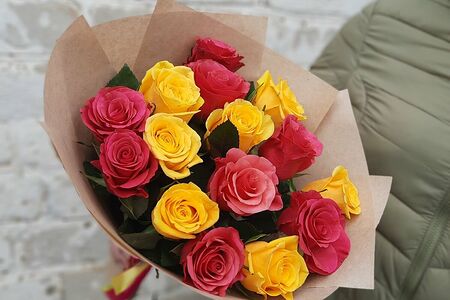 Букет из 15 желто-малиновых роз