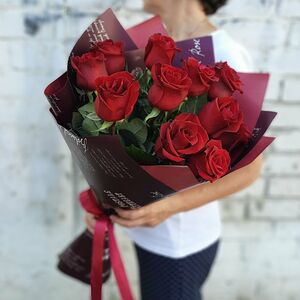 Букет белых ромашковых хризантем в крафтовой упаковке.